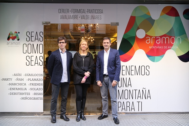 Josep María Gracia, director de MK, Marta Gastón, Presienta de Aramón, y Antonio Gericó, director General de Aramón, durante la presentación de la temporada en Madrid