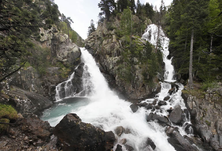 Otra excursión corta y sencilla de hacer es la visita a la cascada de Espigantosa. Para llegar hasta allí, hay que tomar la A-139 desde Cerler y Benasque, en dirección a Eriste. Un poco antes de llegar al pueblo, debes desviarte a la derecha hacia el refugio Ángel Orús. El primer tramo del camino está asfaltado y luego hay que continuar por una pista sin asfaltar que, tras un tramo en pronunciado ascenso, llega hasta un parking. Una vez que dejes el coche allí sólo hay que caminar entre 5 y 10 minutos –una ruta en ascenso que atraviesa un puente- para disfrutar de una espectacular vista de la cascada de Espigantosa. ¡Una gran recompensa para un esfuerzo tan pequeño!