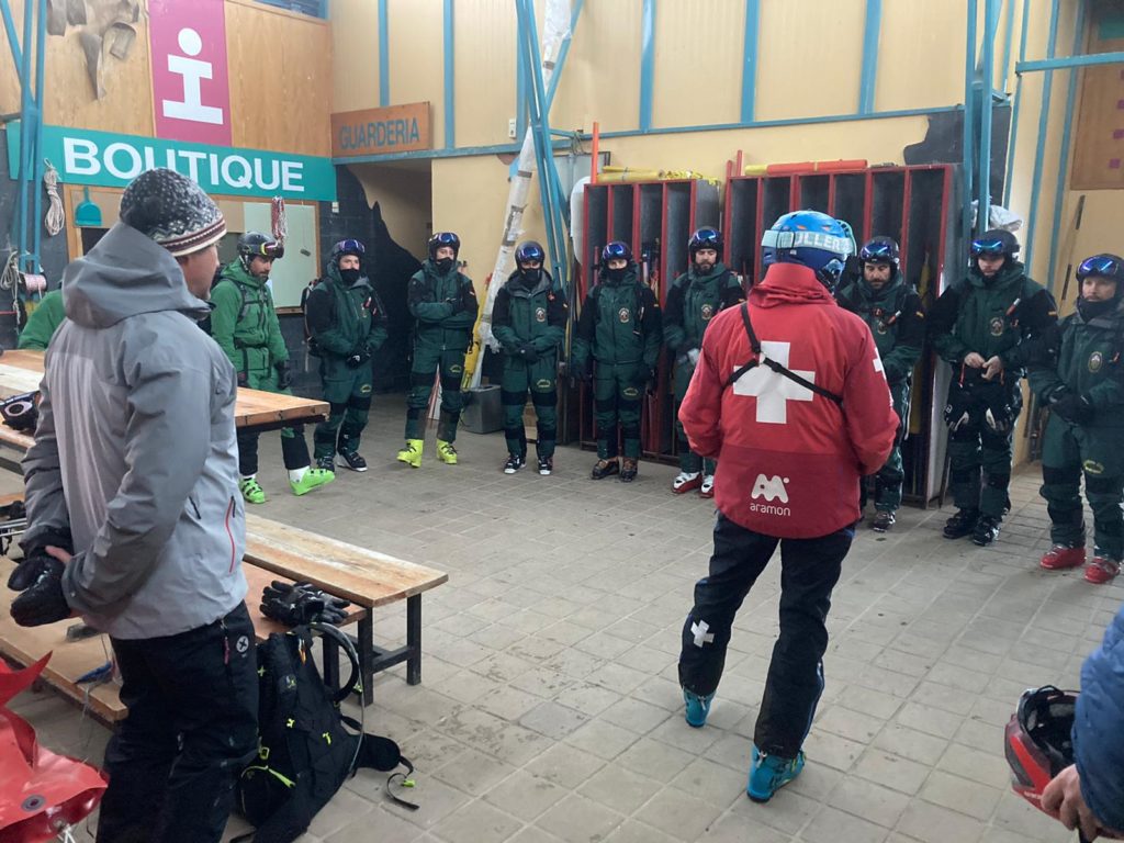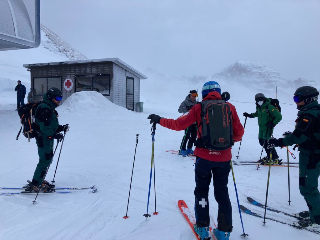 Quince alumnos de del curso de montaña de la Guardia Civil realizaron una práctica de primeros auxilios con el equipo de pisters de Formigal