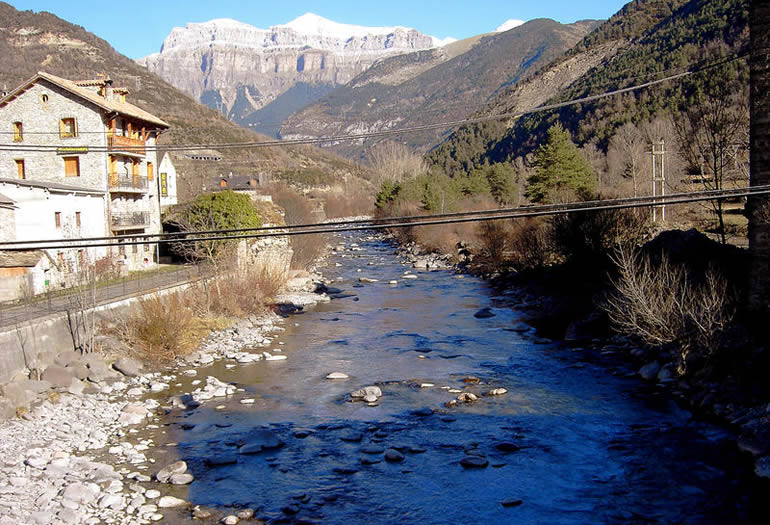 La ruta desde Formigal-Panticosa comienza por la A-136 con rumbo al sur para llegar a Biescas. Tal vez hayas estado allí durante la temporada de nieve, aunque merece una visita fuera de temporada. El municipio, situado a la entrada del valle de Tena, es el nexo entre la Jacetania y el alto Sobrarbe, con un casco antiguo de casas de piedra, antiguas bordas reconvertidas en restaurantes con jardín y, gracias al esquí, un lugar en el que abundan las segundas residencias por lo que el ambiente en sus calles y plazas está garantizado todo el año. No dejes de visitar la iglesia de San Salvador. Su torre se distingue casi desde cualquier punto de Biescas. Y recorre las calles que la rodean. ¡Mantienen todo el sabor de otros tiempos!