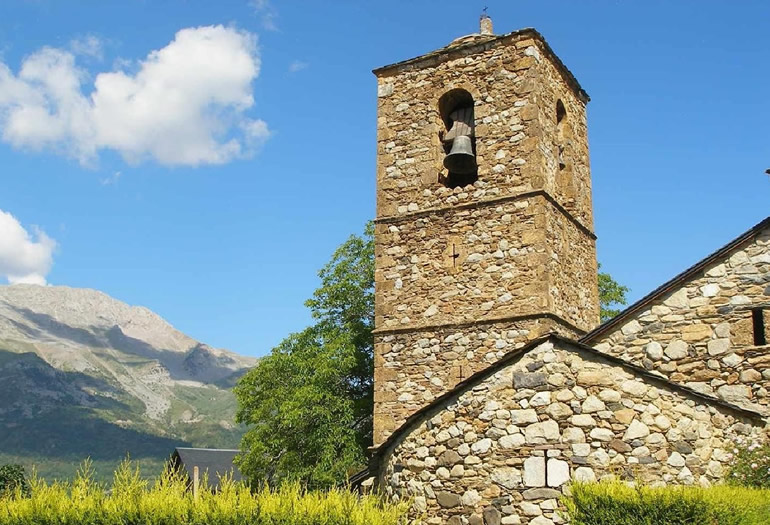 La ruta del Solano -llamada así por ser una zona muy soleada- transcurre en paralelo a la A-139 desde Benasque hacia el sur. Es perfecta para hacer por la tarde ya que a estos pueblos en los que no hay que perderse sus iglesias románicas, les da el sol hasta que se esconde tras las montañas. Eresué es el primer pueblo que encontrarás, a apenas 10 kilómetros. Ubicado a 1.350 metros tiene unas impresionantes vistas del valle y de los tresmiles de esta zona oriental del Pirineo aragonés. La iglesia de San Juan Bautista y la casa Negüe son visita que no debes saltarte.